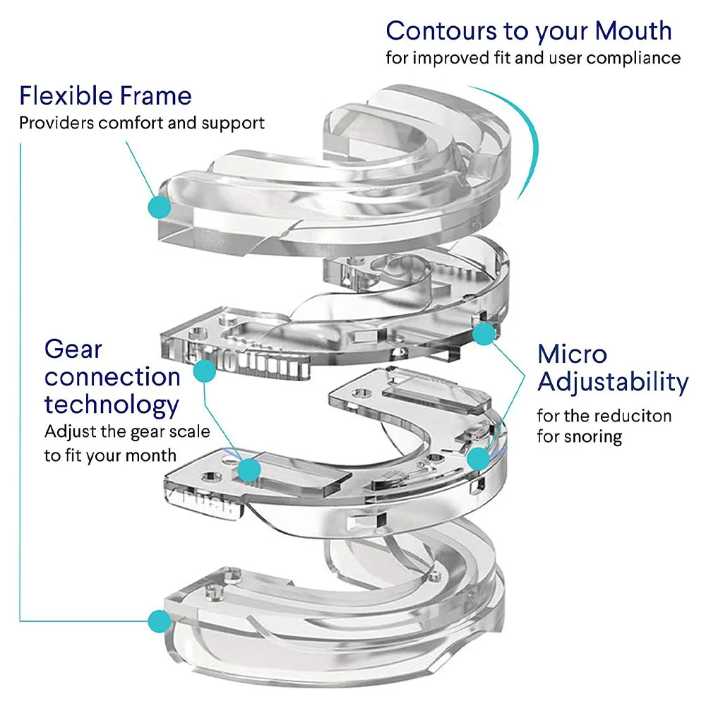 4. Adjustment Mechanism: Features an adjustable lower tray that allows you to advance your chin up to 8mm to open the airway depending on the severity of your snoring.