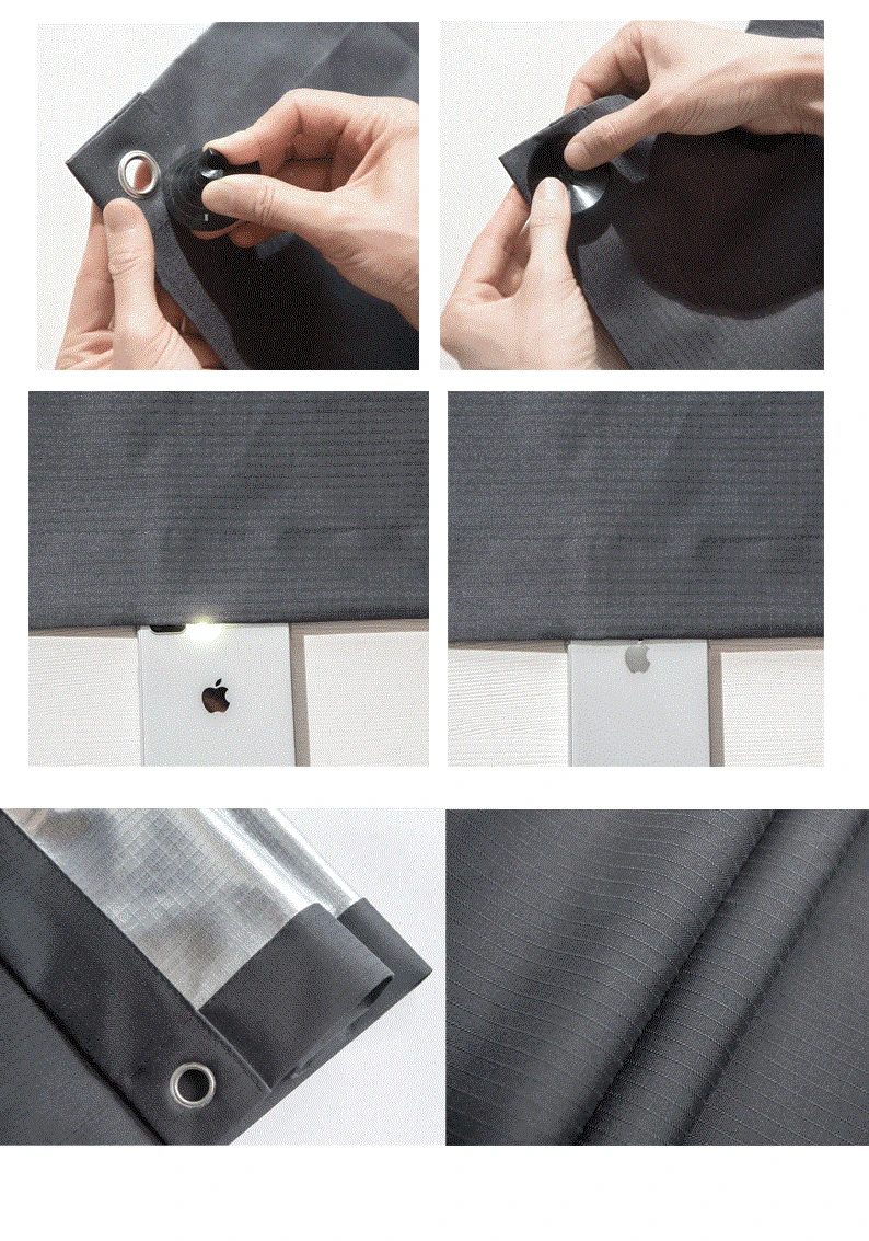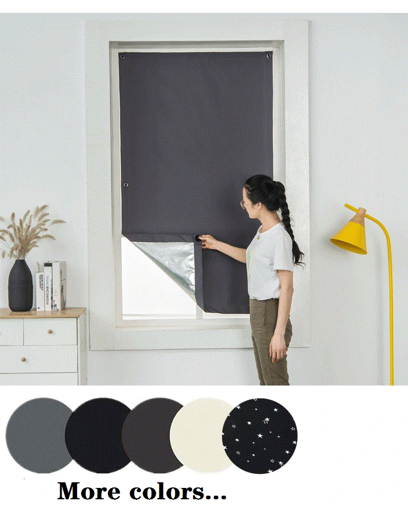UNIQUE DESIGN: The portable blackout blind attaches securely to a window with suctions, and its silver rings allow you to move the suctions to fit to various window sizes while installing