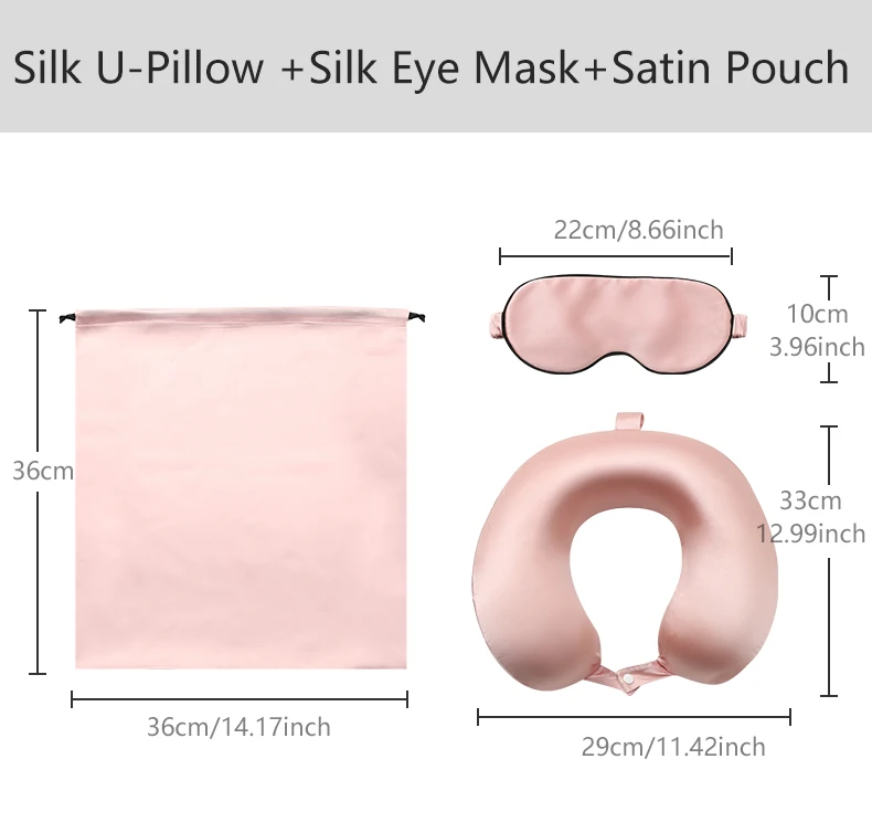 Package Includes:1 × Silk U-Pillow, 1 × Silk Eye Mask, 1 × Satin Pouch