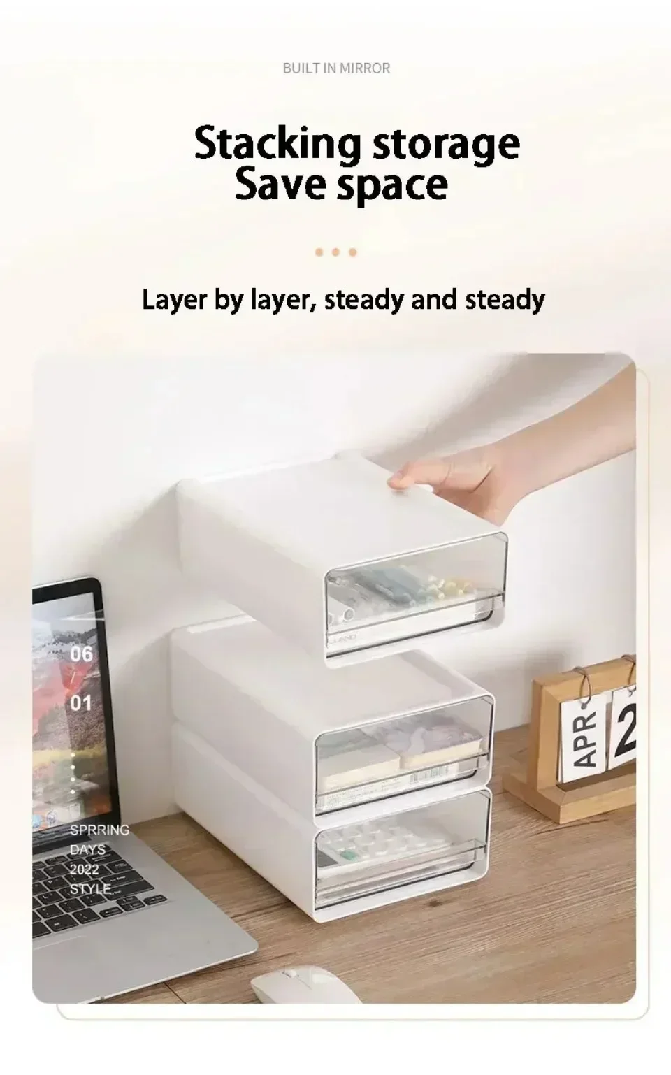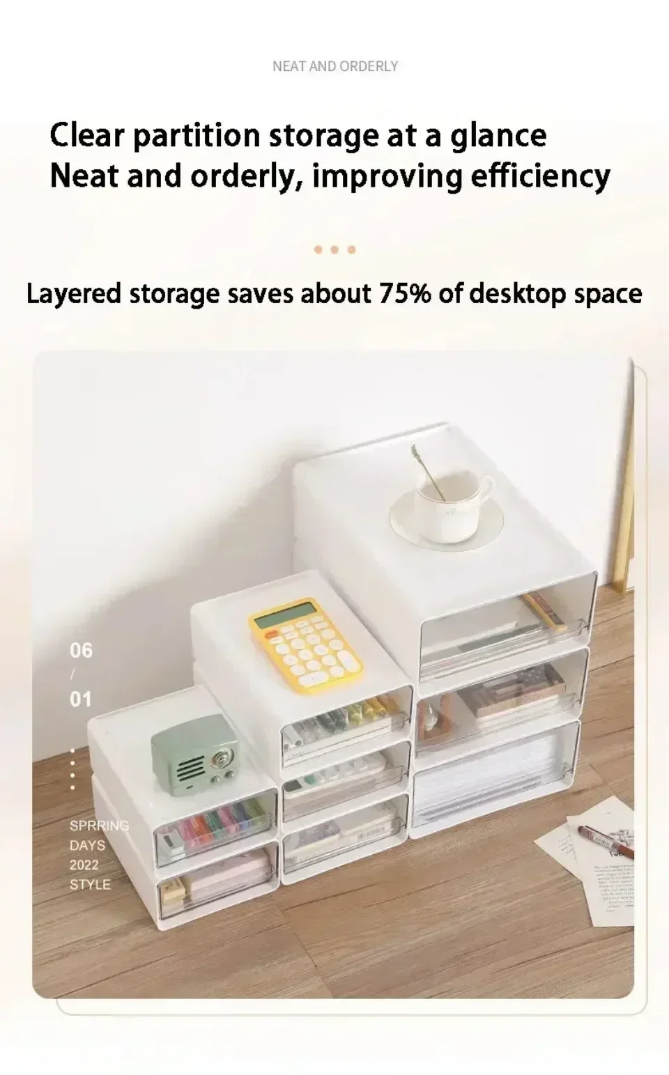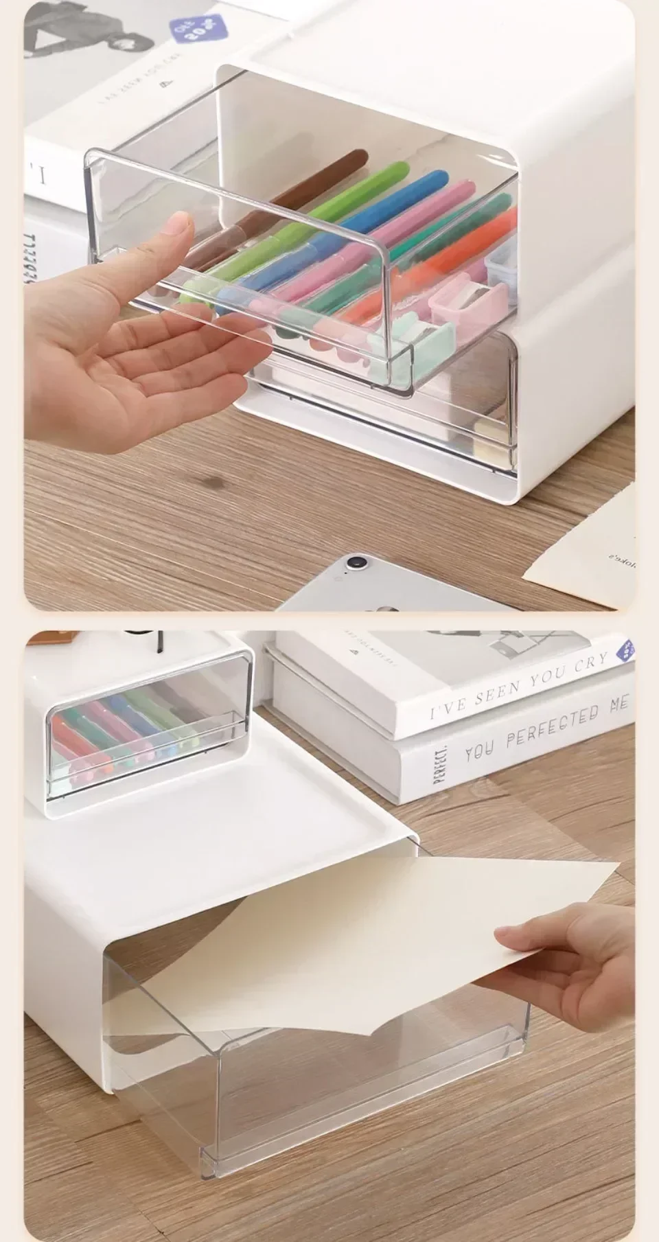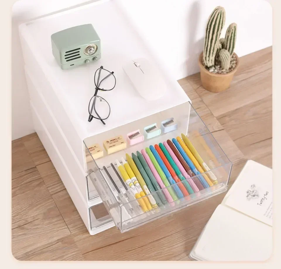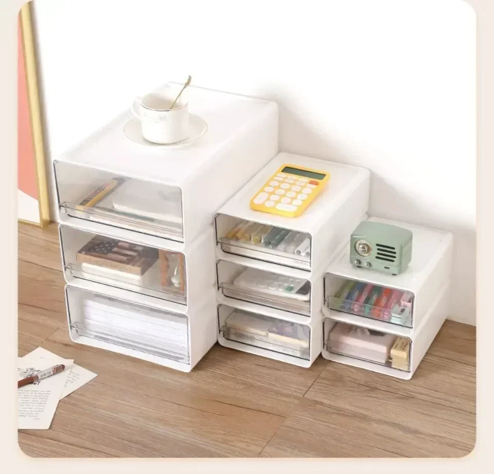 This transparent drawer-style desktop storage cabinet offers a versatile solution for organizing documents, stationery, and daily essentials. With a multi-functional, stackable design, it fits perfectly in bedrooms, study rooms, or home offices—keeping your space neat and modern.