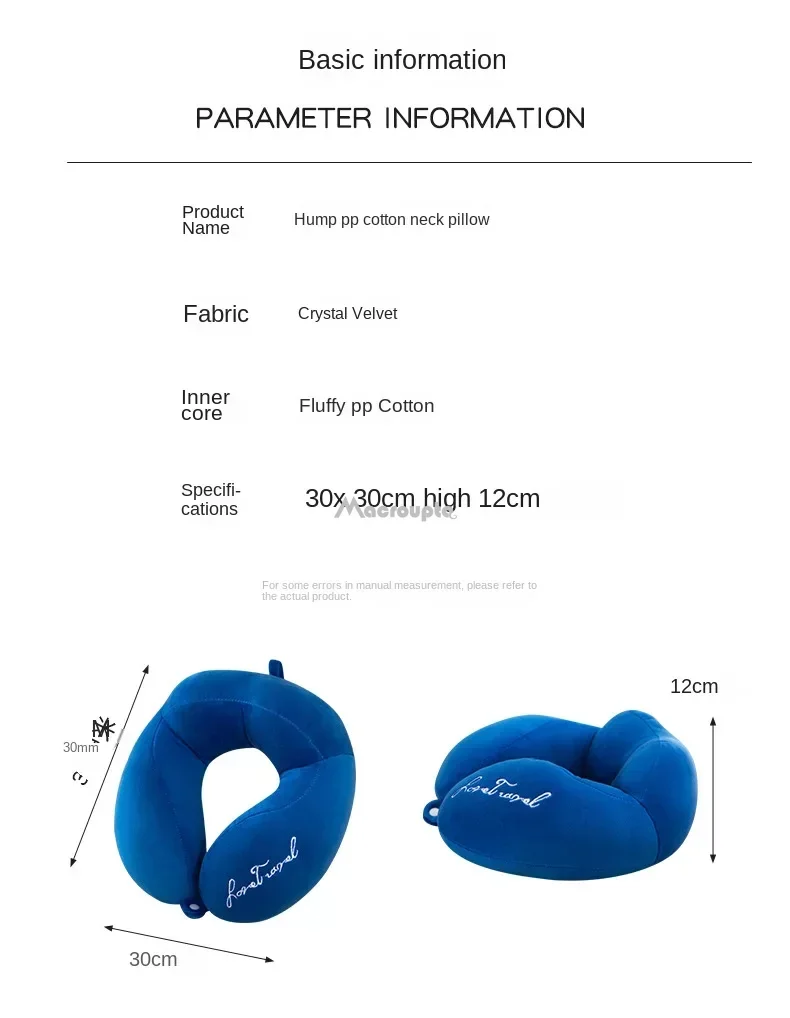 This U-shaped travel pillow provides soft, ergonomic support for the neck during flights, car rides, or long journeys. Filled with comfortable PP cotton, it reduces stiffness and fatigue while promoting restful sleep. Lightweight and portable, it’s ideal for travel or daily use.