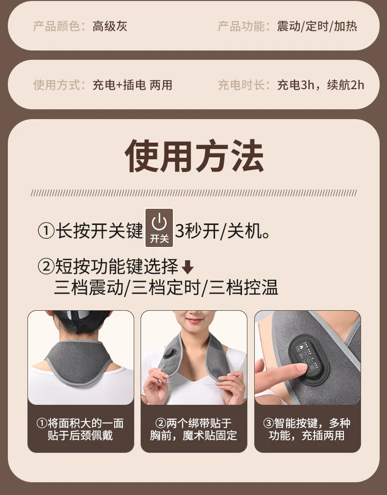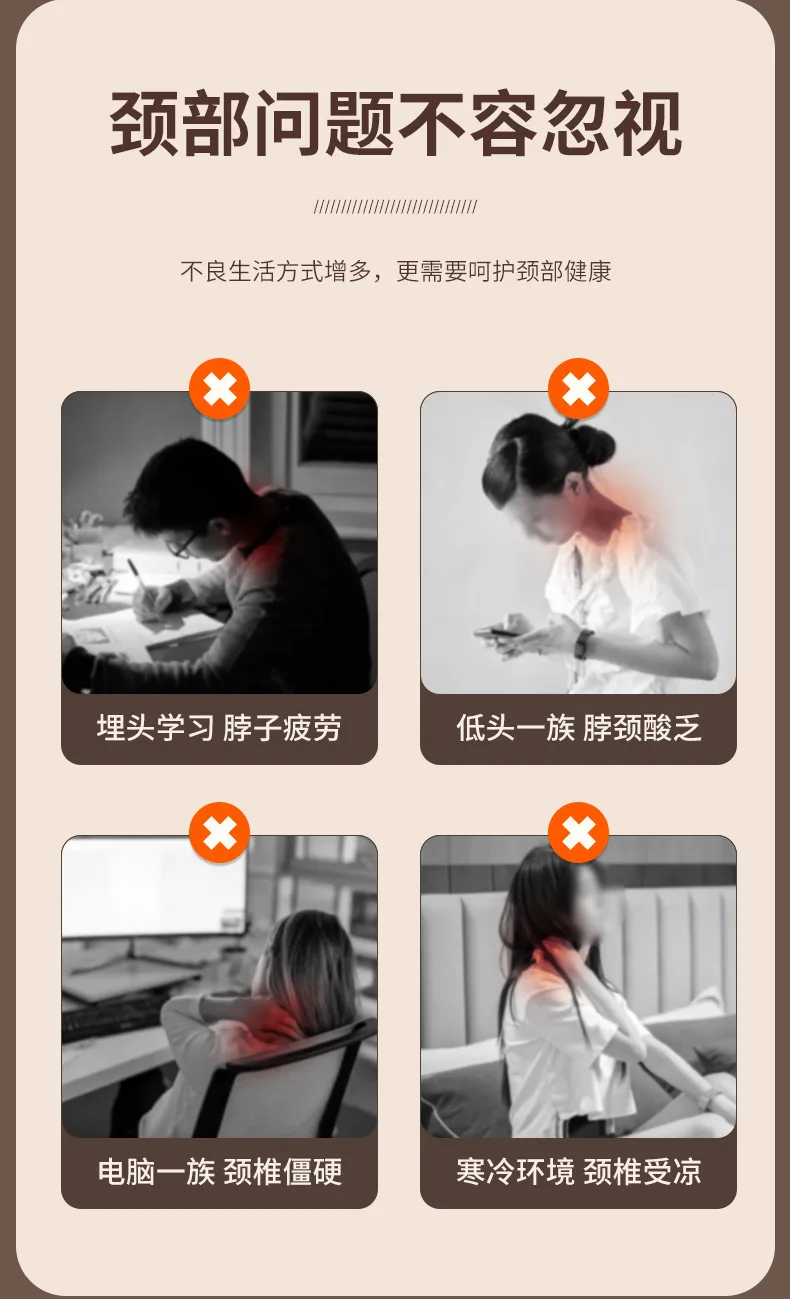 • Heat Therapy Relief: Helps reduce neck soreness, fatigue, and muscle stiffness.